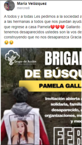 Maria del Carmen Volante, madre de Gallardo junto con familiares y colectivos de búsqueda han continuado la búsqueda para encontrar a la joven y visibilizar la crisis de desapariciones en México.
